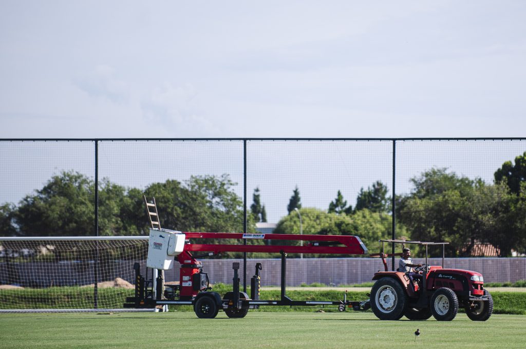 Otro de los frentes activos es la construcción de la base del nuevo vivero propio de césped natural, junto con la obra de riego correspondiente. Este espacio será de vital importancia para el mantenimiento de las canchas naturales del predio, especialmente aquellas con base de arena.