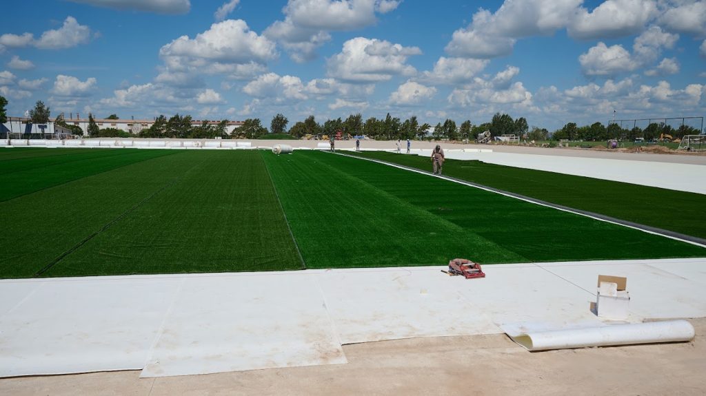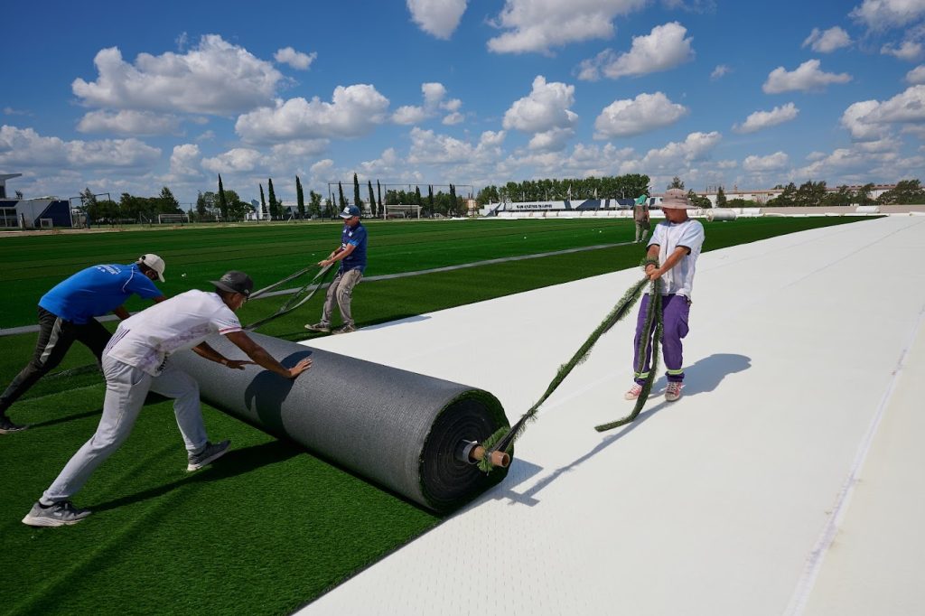Después de la preparación del terreno realizada en las últimas semanas, este viernes comenzó la colocación del césped sintético sobre tres canchas.