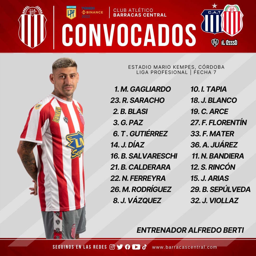 Por la séptima fecha del Torneo Binance 2022, Talleres jugará ante Barracas Central en el Estadio Mario Alberto Kempes. El cotejo se disputará este sábado a partir de las 20.30 hs y contará con el arbitraje de Yael Falcón.