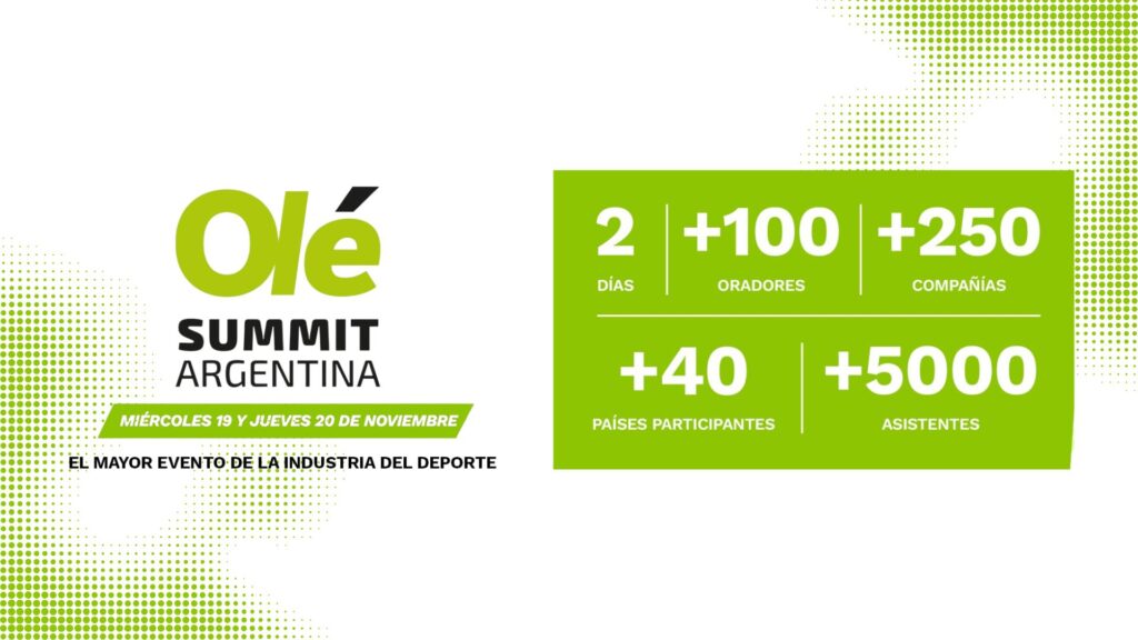 Recordamos que el Olé Sports Summit es uno de los eventos más importantes de la región de la Industria del deporte. A lo largo de dos días se exponen temáticas relacionadas a: Cotizaciones de Jugadores y diferentes mercados / Tik Tok: la nueva era del entretenimiento deportivo / Música, entreteniemiento y deportes: cómo conectar con los gustos de los fanáticos / Cómo se juega en Argentina en comparación con el mundo desde las estadísticas / Fútbol femenino: los grandes progresos de la última década / Protección patrimonial de deportistas / Bienestar integral y salud mental en el deporte.