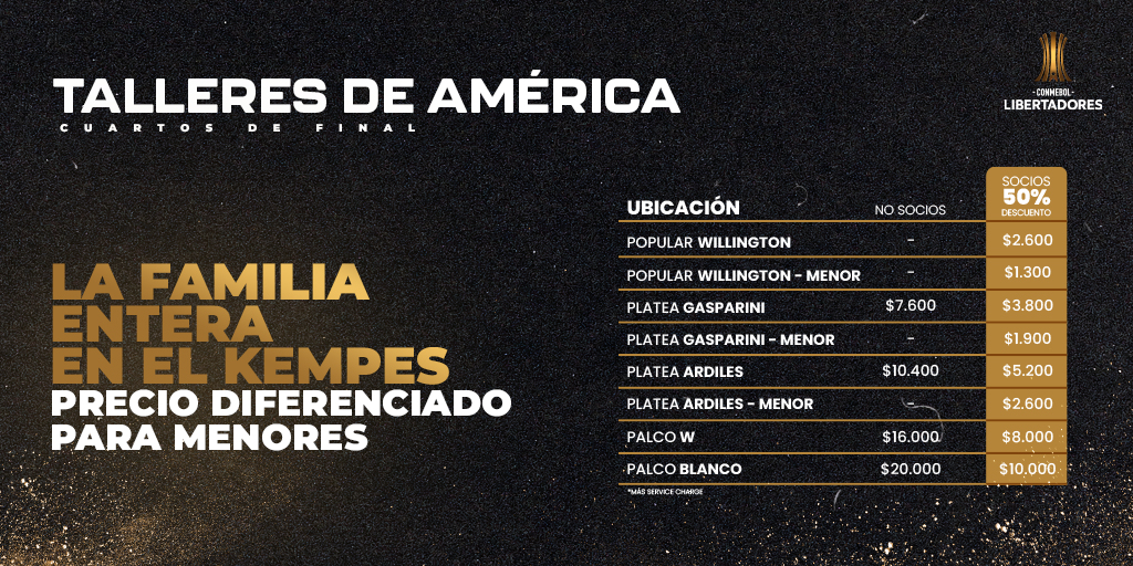 Al igual que los cotejos de Fase de Grupos y Octavos de Final, el expendio comenzará con exclusividad e importantes descuentos para los socios con carnet al día. Además, los socios categoría menores (de 0 a 11 años, inclusive) tendrán un valor diferencial de entrada para que la Familia Albiazul replete el coliseo cordobés.