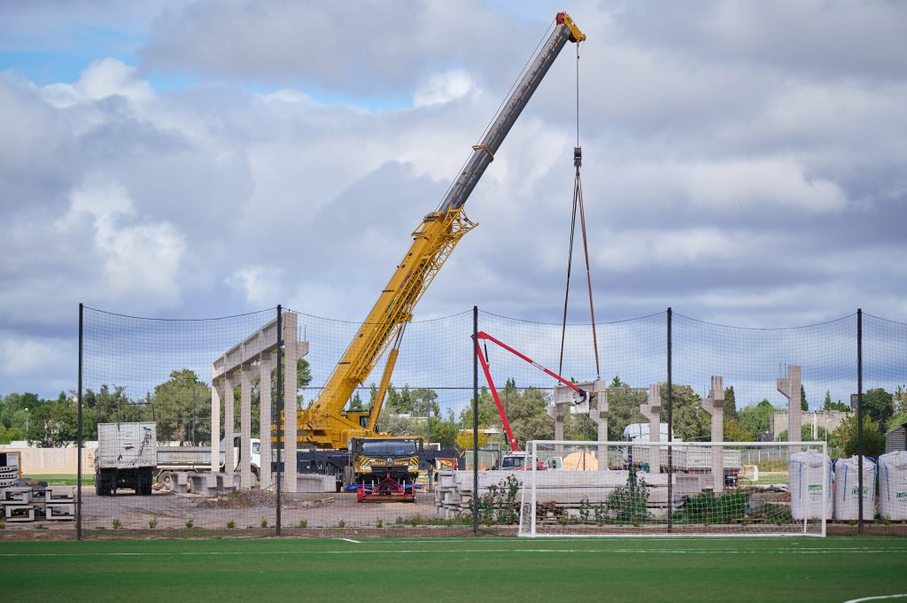 El crecimiento del predio continúa consolidándose, permitiendo una utilización más eficiente de los recursos y de la mano de obra. En este sentido, también se avanza en la construcción de las bases para las futuras gradas de las canchas del CARD, las cuales serán realizadas completamente con estructuras prefabricadas.