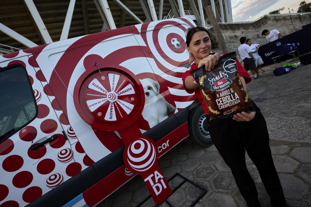 Nobis fue una de las grandes atracciones, con juegos para grandes y chicos. Pruebas de precisión, desafíos con pelota y prubas de fuerza para que los hinchas entren bien arriba al estadio.